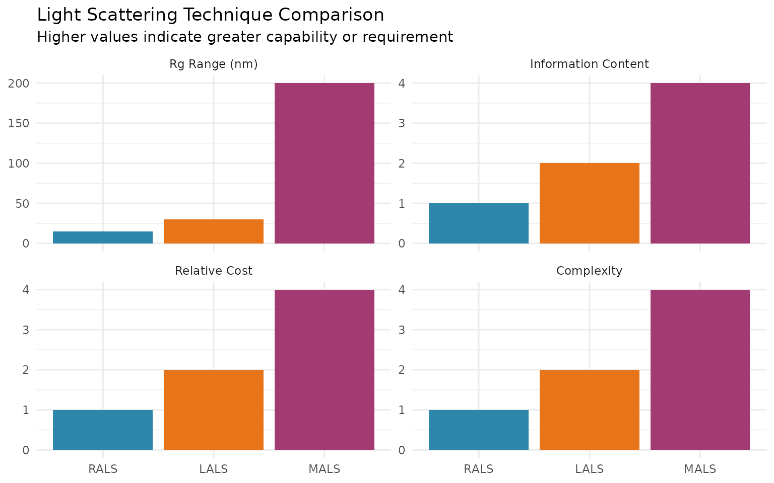 | Lower cost than MALS | More sensitive to dust/aggregates |