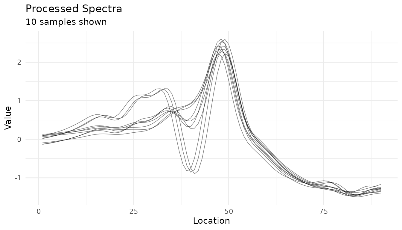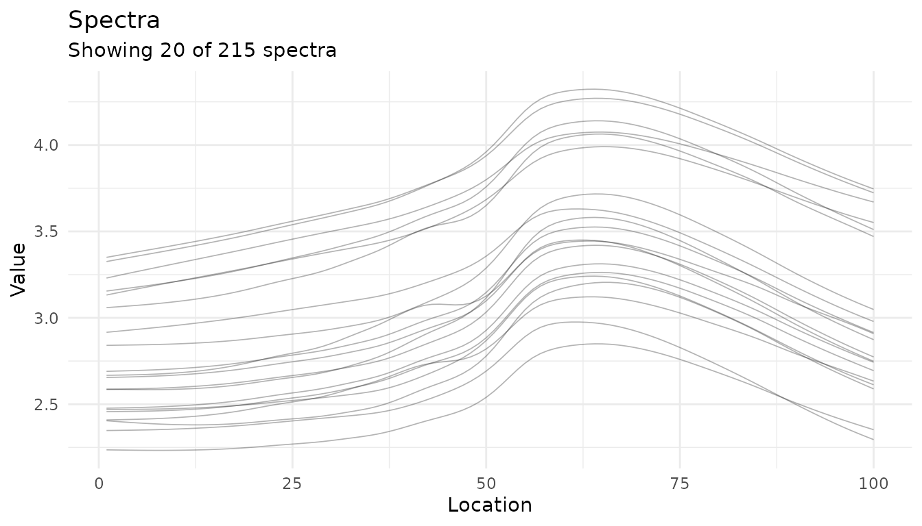#> ℹ No ID column identified. Consider using update_role(col, new_role = 'id').Visualizing Spectra