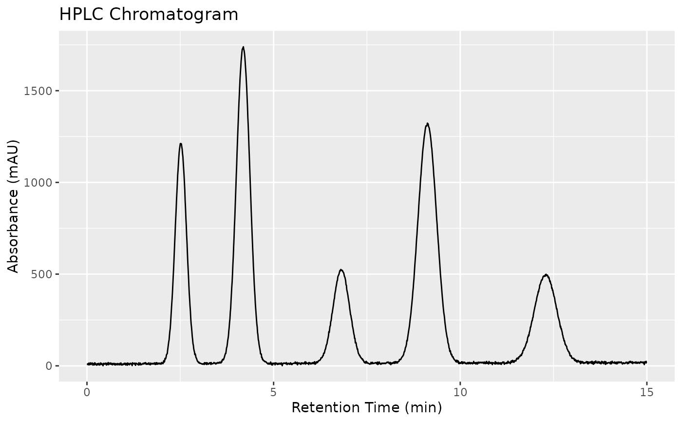 chrom_1 <- hplc_chromatograms |> filter(sample_id == 1)