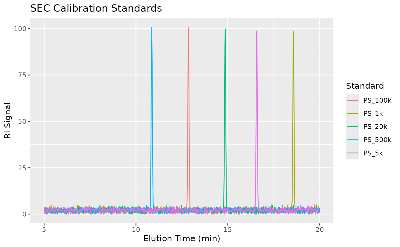 standards <- sec_chromatograms |> filter(sample_type == "standard")