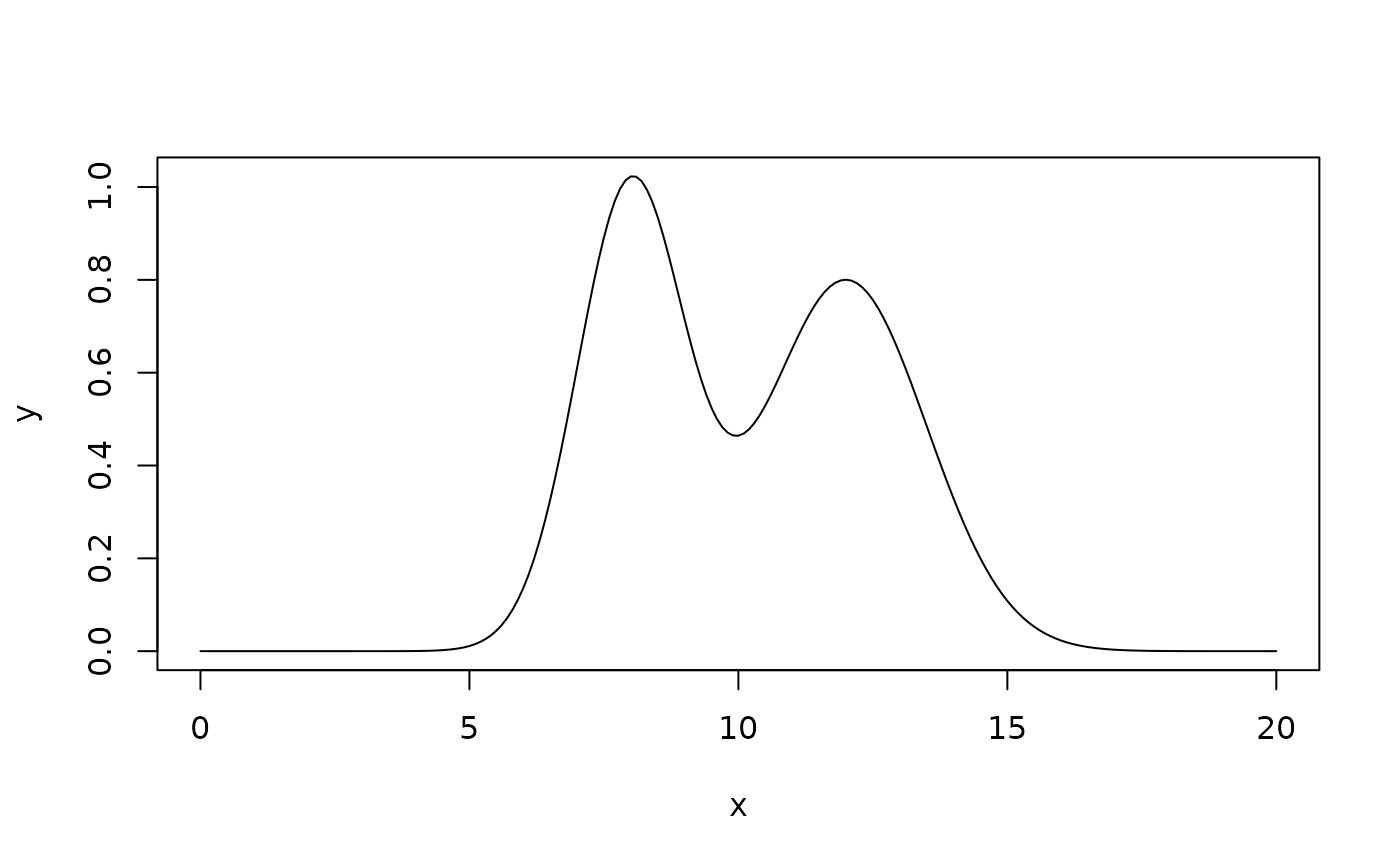 y <- sum_peak_models(x, list(model1, model2), list(params1, params2))